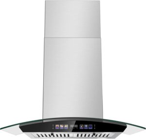The 30-Inch Island Range Hood 700 CFM combines modern style with high-performance ventilation. Its tempered glass design, color gesture sensing, and touch controls make it a stylish and functional addition to any contemporary kitchen.