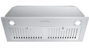 The FIREGAS insert is built for seamless integration into custom cabinetry. It provides excellent airflow (up to 450 CFM), making it suitable for heavy cooking. Its baffle filters capture grease effectively and are dishwasher safe.