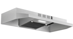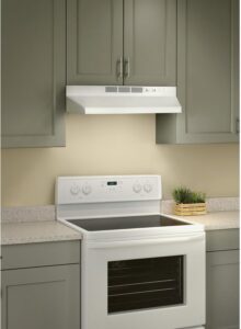 The Broan-NuTone 413001 Non-Ducted Ductless Range Hood is a 30-inch under-cabinet model designed for homes without external venting. Instead of exhausting air outdoors, it recirculates filtered air back into the kitchen, making it a great choice for apartments or kitchens where duct installation isn’t possible.